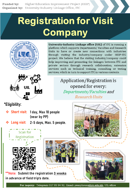 University-Industry Linkage (UIL) office of ITC, established in 2014 with the collaboration from Belgium universities partners (ARES-CCD), is a unit responsible for coordinating, collaborating and networking between ITC experts, ITC services and private sectors. UIL has played a pivotal role in promoting partnerships with business and private sectors, creating strategies and mechanisms for the cooperation and monitoring the operational progress to ensure continuous and sustainable cooperation between ITC and private sectors at all levels.